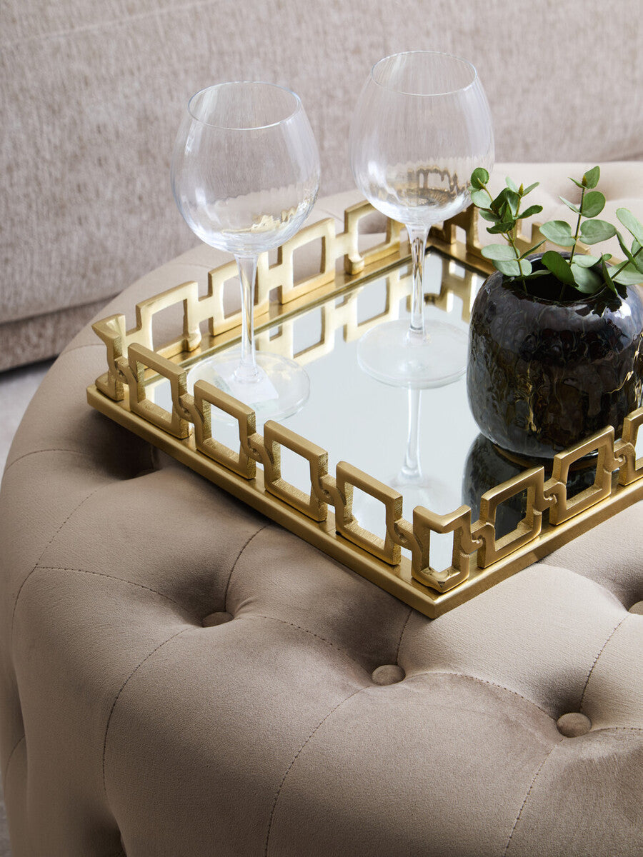 Introduce warmth and indulgent texture with the Haley Footstool — a circular ottoman cloaked in rich mink-brown velvet and finished with elegant button tufting. Its handcrafted drum silhouette brings soft sophistication to any room, offering both style and versatility.