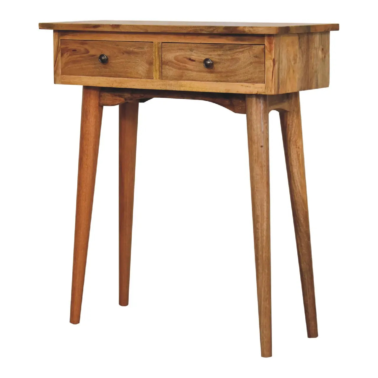Add minimalist charm to your home with this Mini Nordic Console Table, crafted from 100% solid mango wood with a sleek oak-ish finish. Its Nordic-inspired design fits perfectly in hallways, bedrooms, or small living spaces.